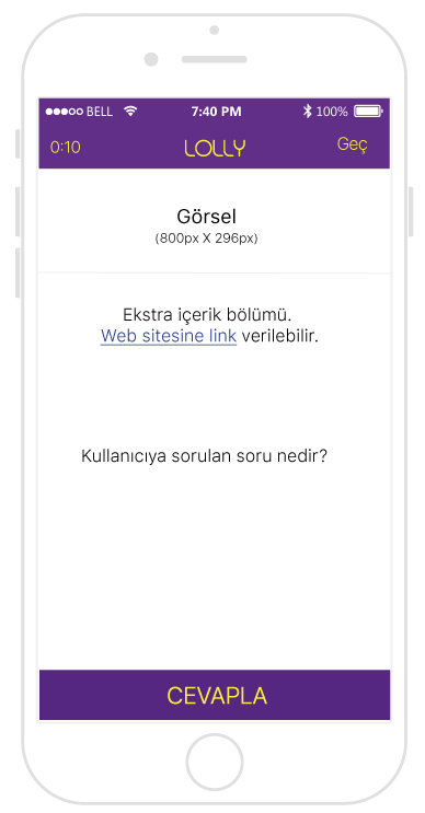 Kullanıcıların sorulan sorulara doğru cevap verdiğinde kazandığı doğal, eğlenceli, bilgilendirici, motive edici ve öğretici sorular. Marka mesajını en iyi öğreten dijital iletişim yöntemi.